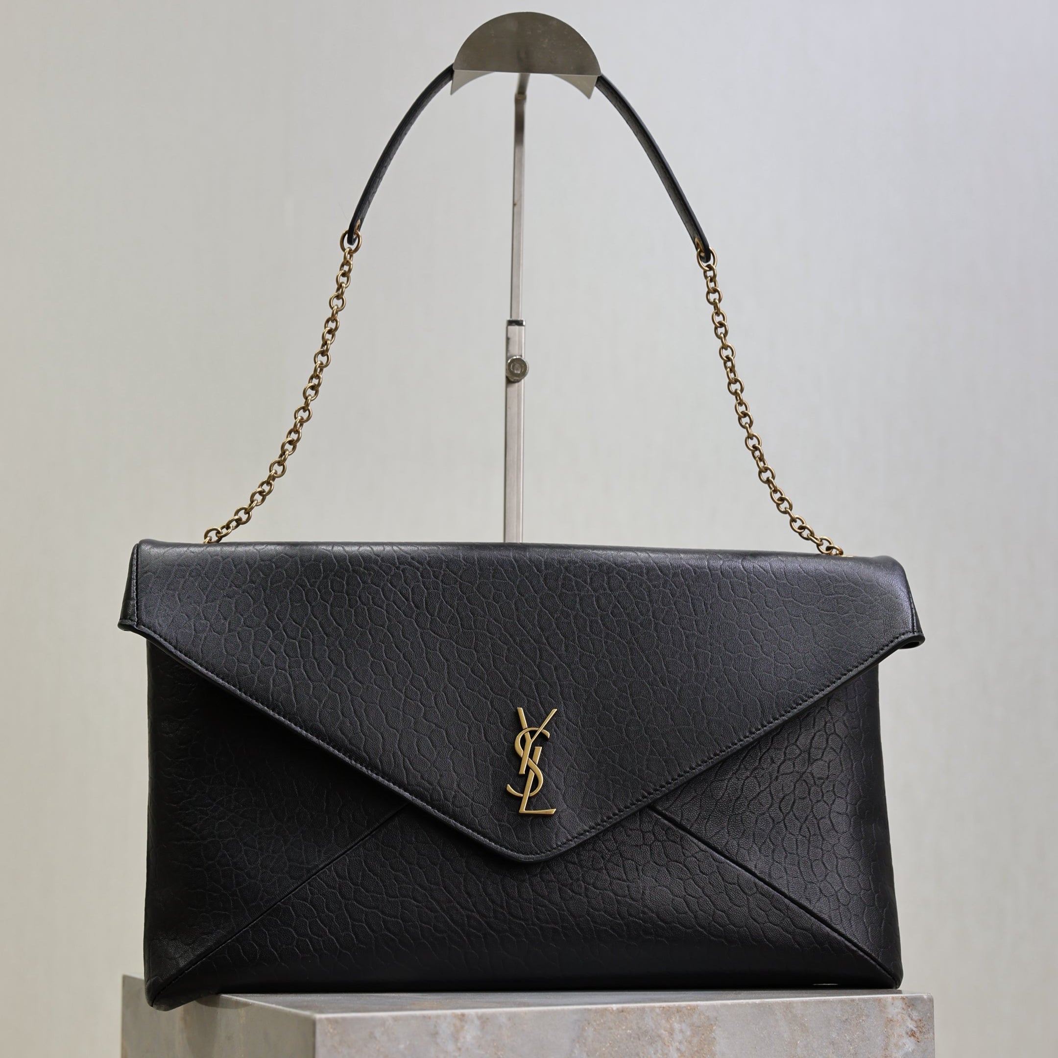 YSL 25S CASSANDRE ENVELOPE MESSENGER 35 IN BLACK LAMBSKIN GOLD HARDWARE