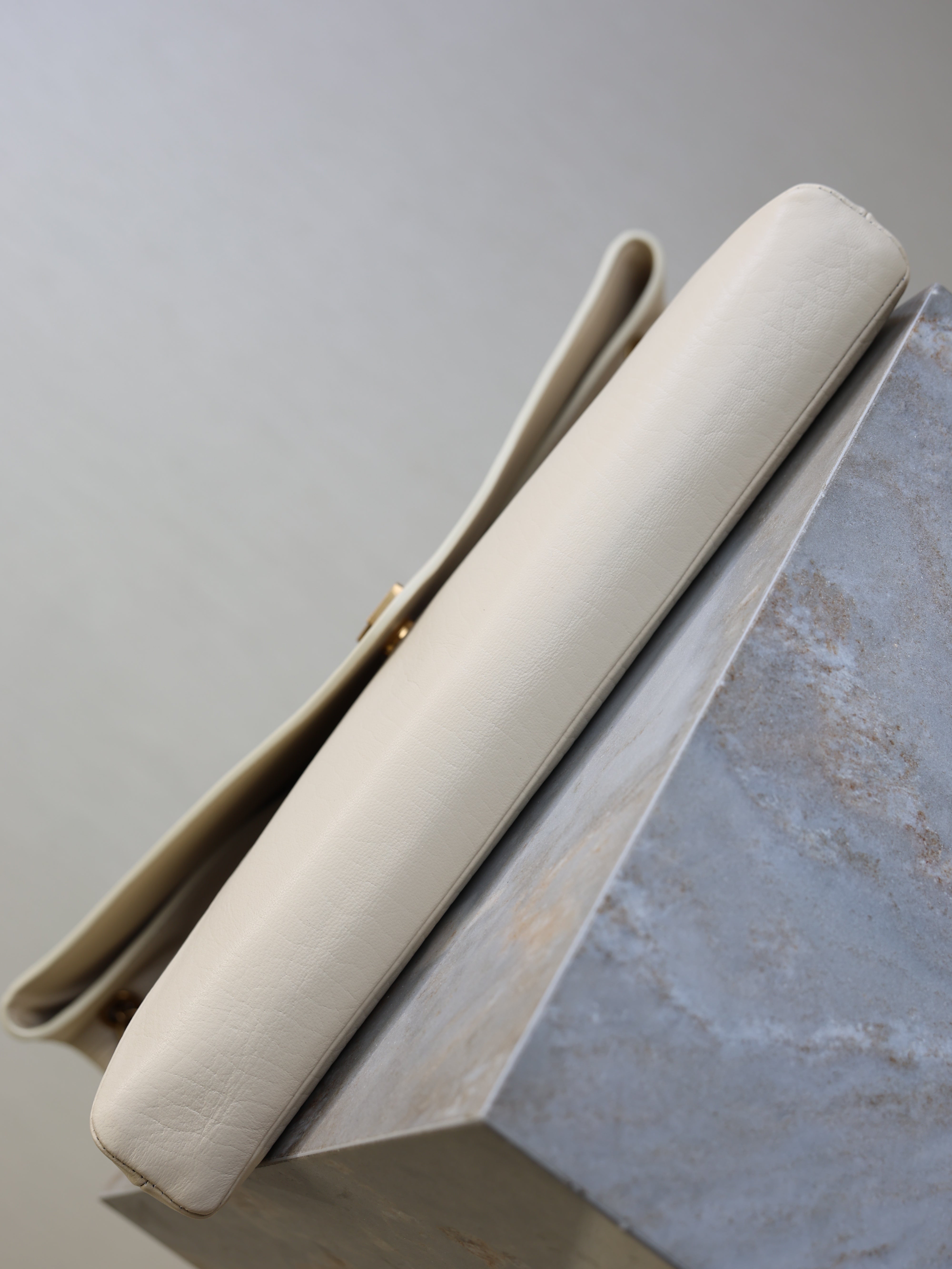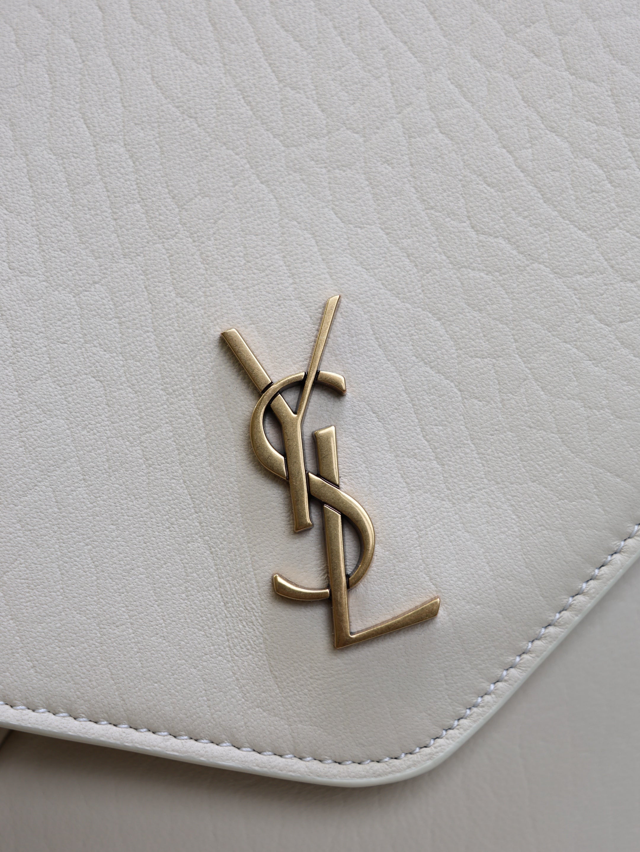 YSL 25S CASSANDRE ENVELOPE MESSENGER 35 IN BLANC VINTAGE LAMBSKIN GOLD HARDWARE