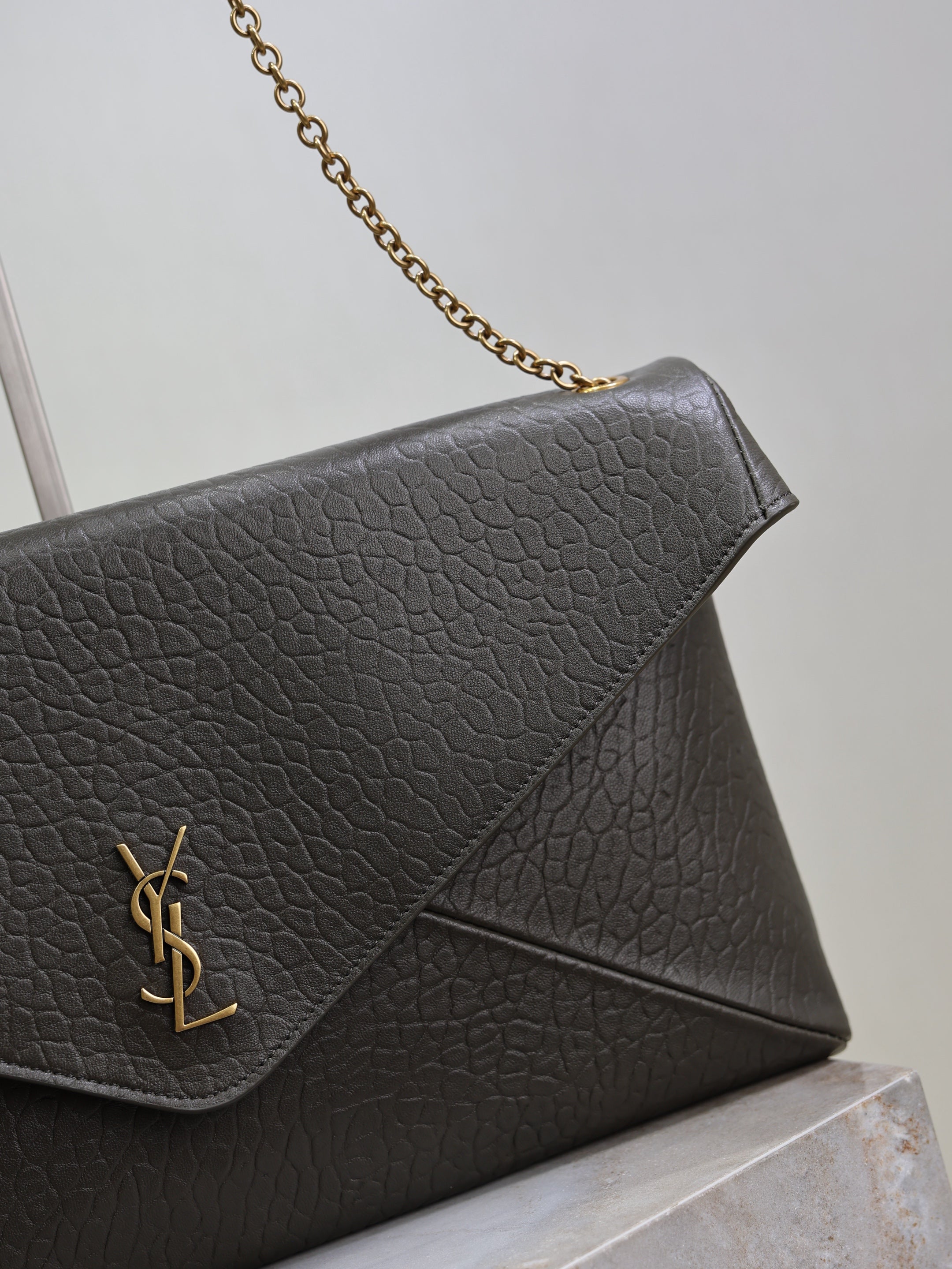 YSL 25S CASSANDRE ENVELOPE MESSENGER 35 IN LIGHT MUSK LAMBSKIN GOLD HARDWARE