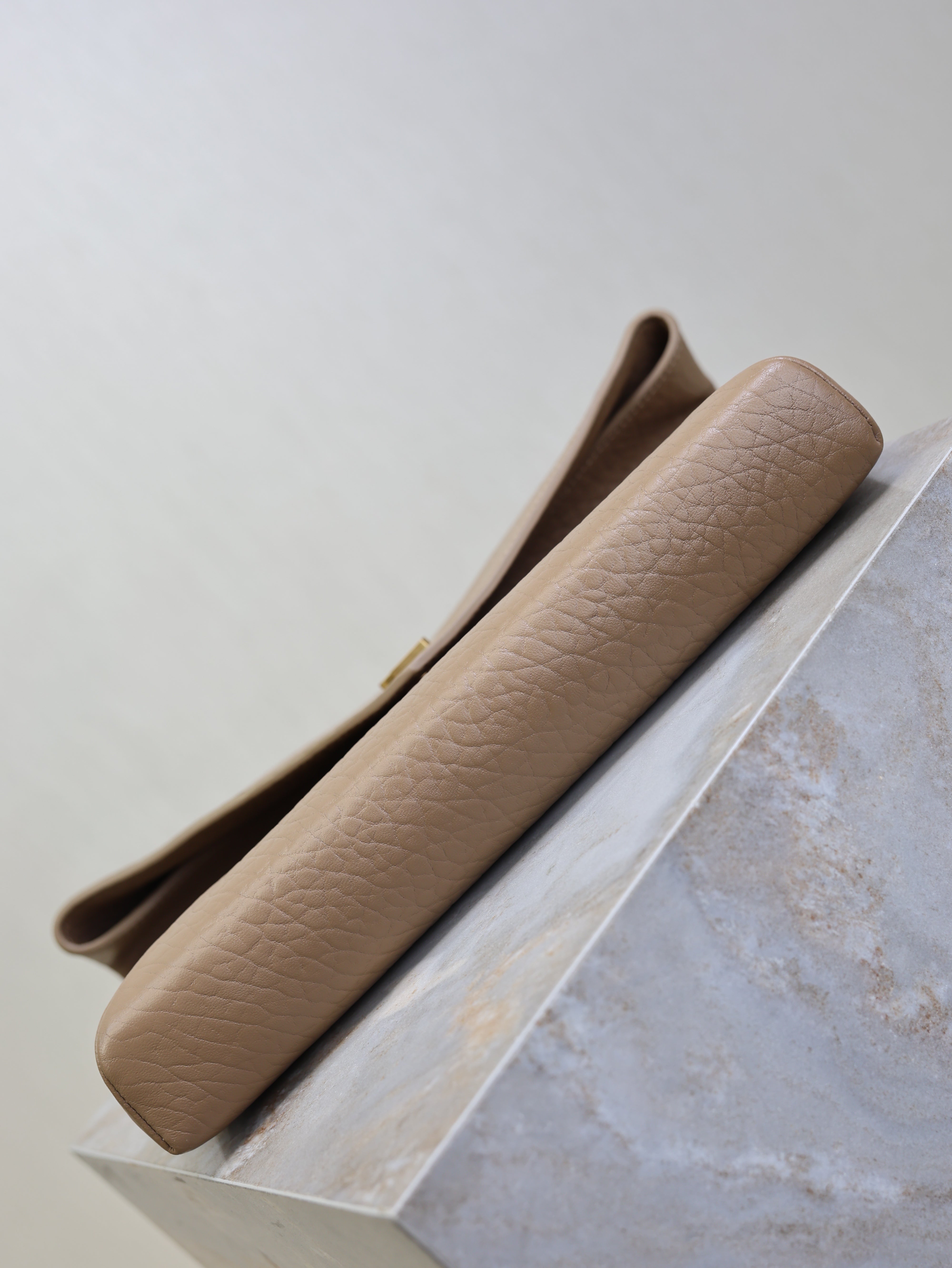YSL 25S CASSANDRE LARGE ENVELOPE POUCH 29 IN DARK TAUPE CALFSKIN GOLD HARDWARE
