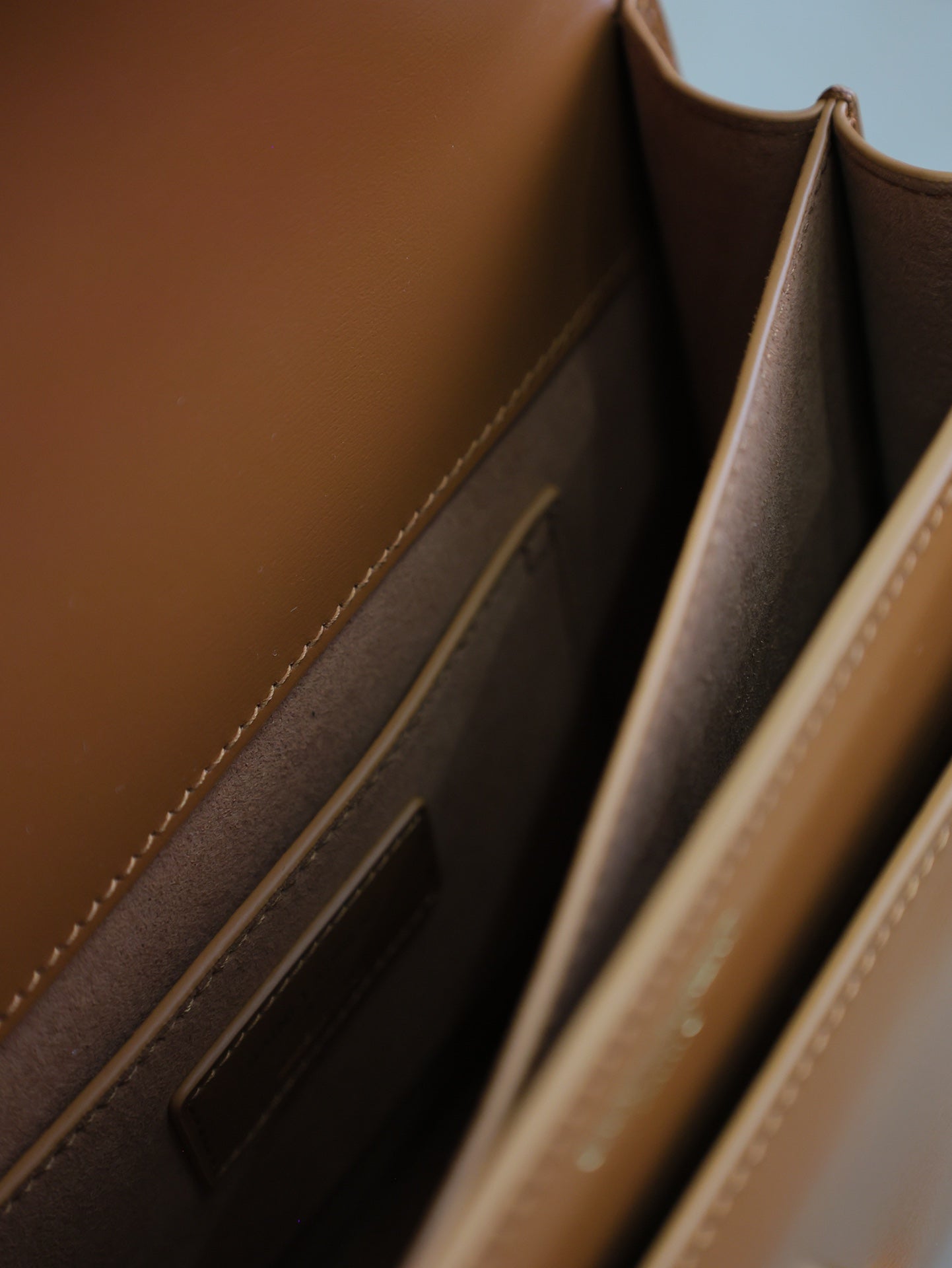 YSL 25S SUNSET BAG 22 IN DARK CARAMEL CALFSKIN GOLD HARDWRE