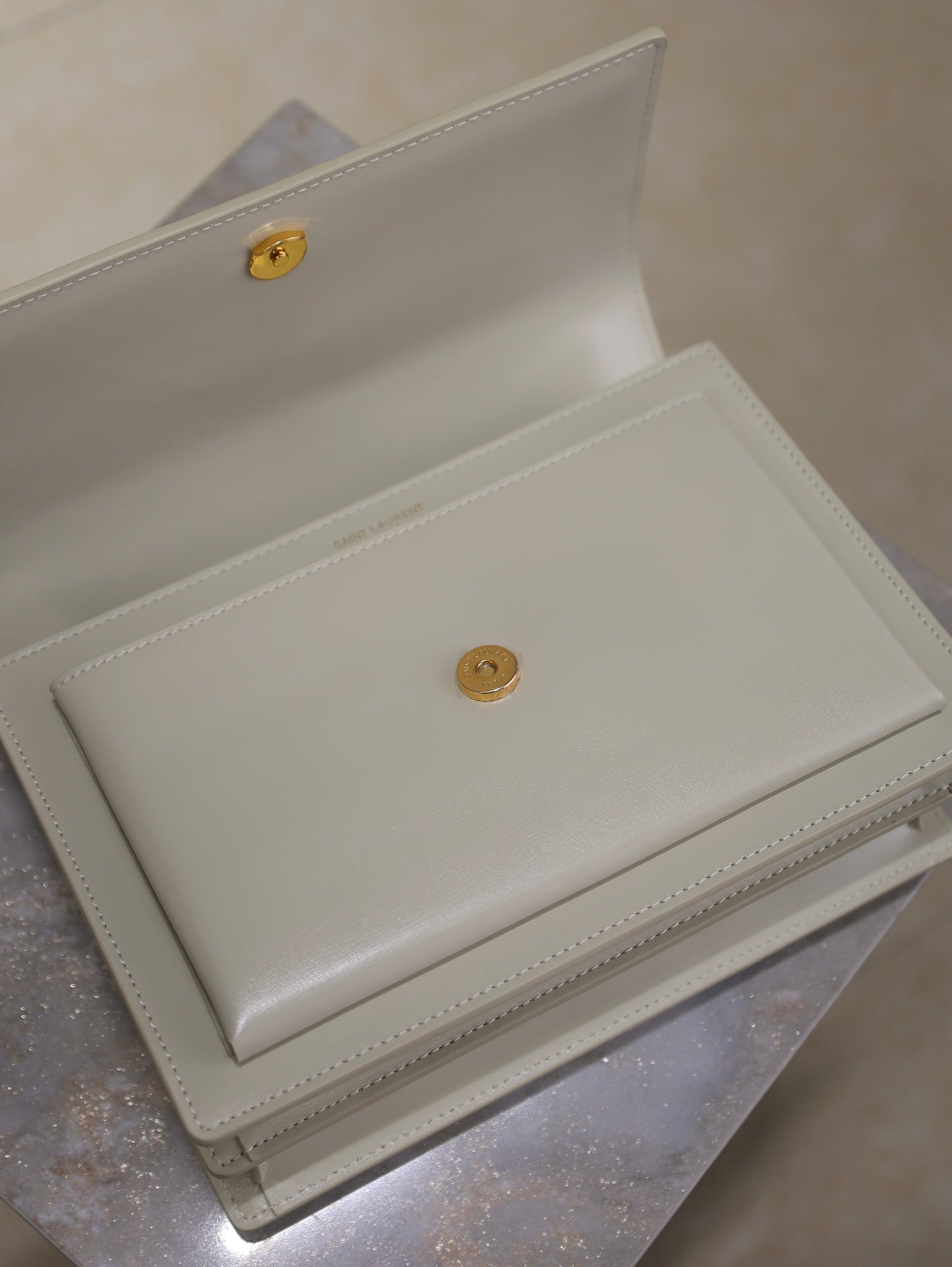 YSL 25S SUNSET BAG 22 IN IVORY CALFSKIN GOLD HARDWRE